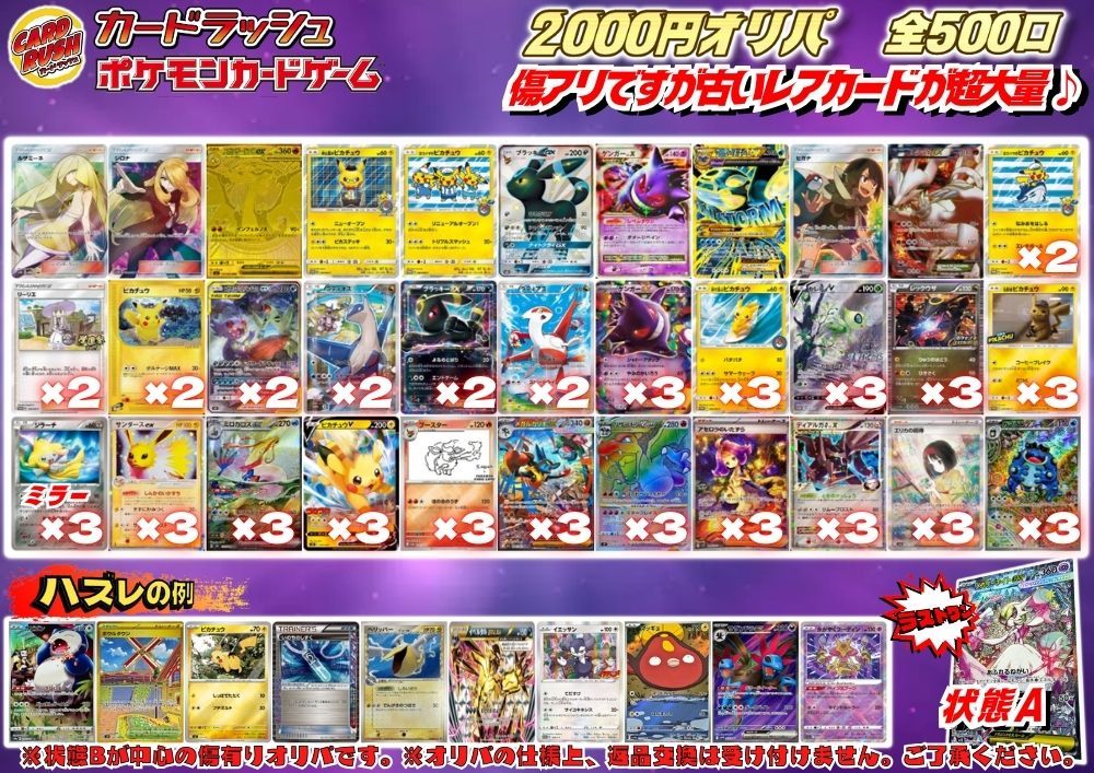 ※内容カードは状態Bが中心です。オリパの都合上返品・交換はお受け出来ません。ご了承ください。